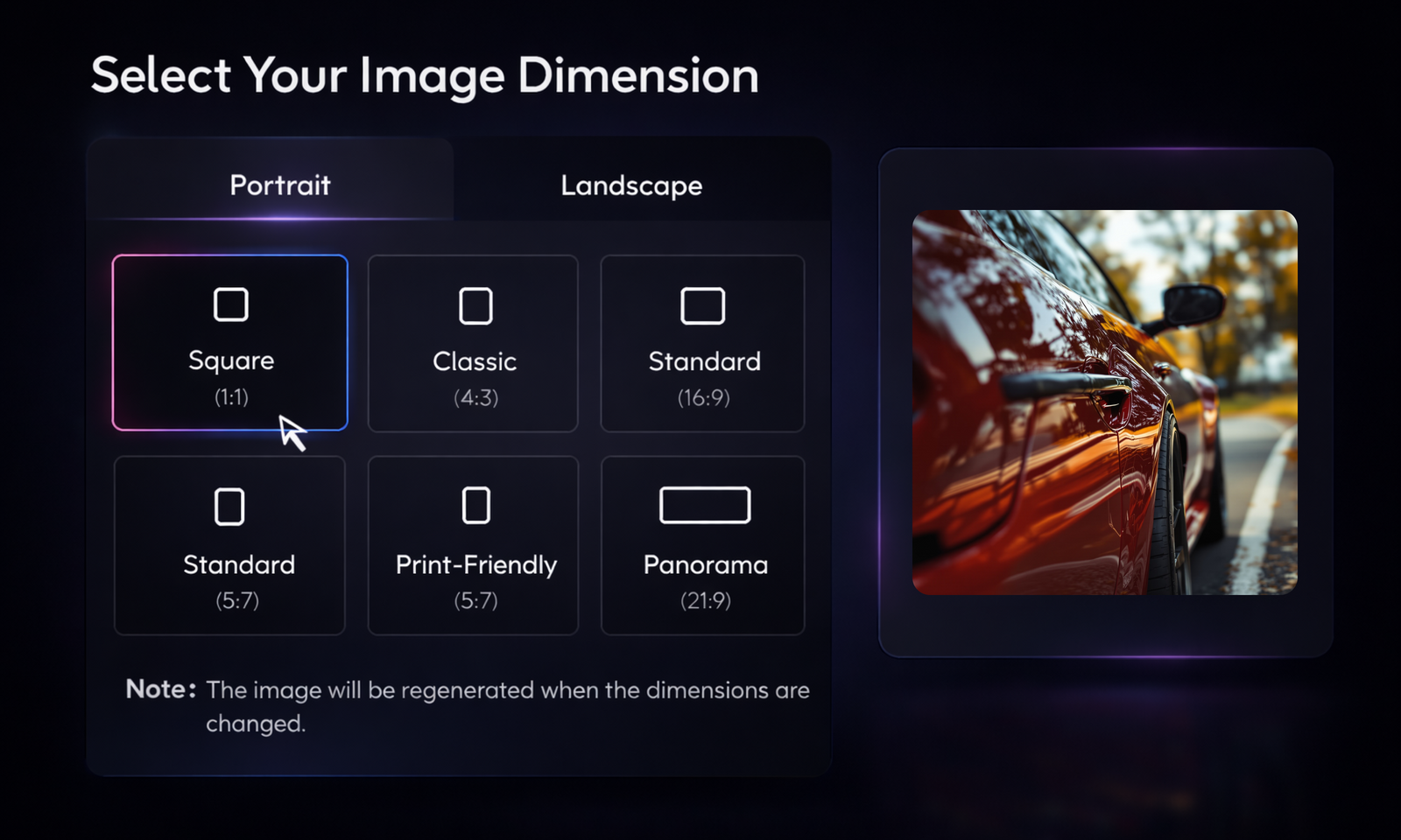 Choose your preferred format from Portrait or Landscape orientations. Each offers multiple sizing options to perfectly match your artistic vision.